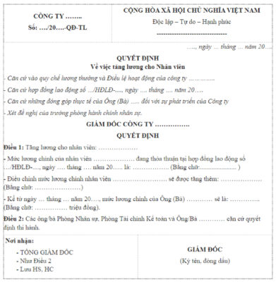 Mẫu quyết định tăng lương là một tài liệu quan trọng được các...