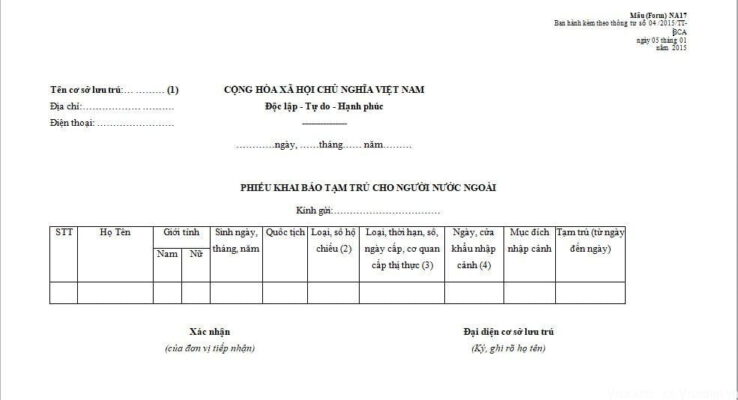 Mẫu khai báo tạm trú cho người nước ngoài mới nhất là tài...